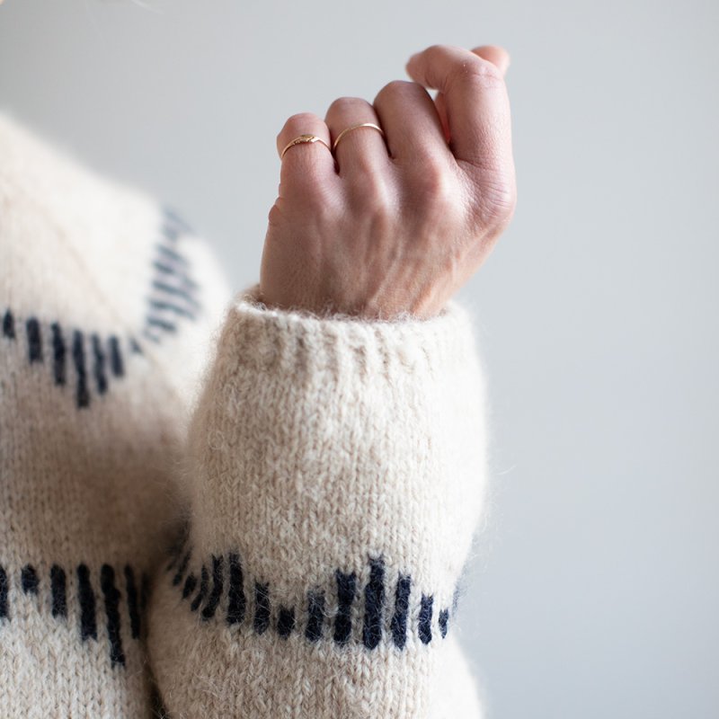 Lash Lash Sweater ist ein toller, weicher Pullover mit einem zeitlosen und eleganten Ausdruck. Das Design besticht durch einen schönen, abgerundeten Halsausschnitt, reguläre Armausschnitte und eine feine, weiche Kurve unten am Rumpf, wodurch der Pullover einen harmonischen und femininen Schnitt erhält. Der Pullover wird von oben nach unten gearbeitet, so dass eine bequeme Passform entsteht und die Länge nach den persönlichen Wünschen angepasst werden kann. Ein klassisches Design, das Komfort und Ästhetik verbindet.